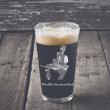 This unique and thoughtful World's Greatest Pint Glass is the perfect gift for any special occasion! Our laser engraving technology allows you to customize the glass with a picture of your favorite memory and personalized text underneath. Whether it's a birthday, Father's Day, graduation, wedding, baby shower, baptism, or any other occasion, this pint glass will make a lasting impression. With its superior craftsmanship and classic design, this pint glass is sure to be a treasured keepsake for years to come!