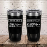 Searching for the perfect gift for your baby's Godparents? Look no further! Raise a glass to the special bond between Godparent and child with this custom engraved barware! These insulated tumblers are engraved with the words “Godmother” or “Godfather” as well as the name of your special recipient and child. These personalized glasses make the perfect gift for any Godparent who likes to sip on bourbon or a nice glass of their favorite wine at the end of a hard day.