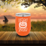 Pick up some of these fun Halloween wine tumblers and celebrate the season in style! These custom wine cups make perfect gifts for teachers, coworkers, family, friends, and more! They also make wonderful favors for fall parties this season. Each wine tumbler is etched with a festive Halloween design and can be personalized with a name/text on the back. These Polar Camel 12 ounce tumblers are made of durable stainless steel and are perfect to use while out trick-or-treating, partying at a festive Halloween gathering, or simply drinking your evening cocktail! Enter your color, design style, and personalization (optional) upon checkout.