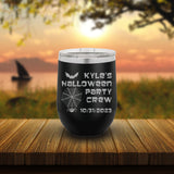 *All Halloween 12 ounce wine tumbler designs can be engraved on our 16 ounce pint glasses, 17 ounce beer mugs, 17 ounce wine glasses, 20 ounce tumblers, or 11 ounce black ceramic coffee mugs upon request.
