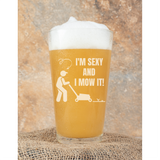 Make your special someone laugh with this "I'm Sexy and I Mow It" pint glass gift! This hilarious etched pint glass is perfect for any occasion, and is sure to make your loved one smile. Crafted from premium glass and featuring a fun and bold design, this engraved beer glass is the perfect way to show your appreciation. Whether you're celebrating Father's Day, a birthday, an anniversary, or just want to say "I love you," this unique gift is sure to be a hit. So go ahead and show your special someone just how much you care with this "I'm Sexy and I Mow It" Pint Glass Gift!