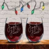Our festive Jingle & Joy Stemless Wine Glass is the perfect addition to your holiday celebrations! Crafted with care and engraved with whimsical elegance, this wine glass is adorned with the words "Jingle Juice" in a charming script font, exuding holiday cheer with every sip. To the right of the wording, are delicate holly berries and a trio of leaves. Made from high-quality glass, this stemless wine glass is not just a functional piece but also a stylish and meaningful decoration for your holiday table.