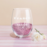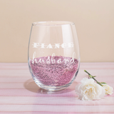 Celebrate your upgraded relationship status with this Fiance to Husband/Wife stemless wine glass set. These engraved newlywed wine glasses make an excellent wedding gift for that special couple who loves nothing more than spending quality time together while sipping on their favorite vino! In addition to the beautiful design, each stemless wine glass has a heavy base which gives them a substantial, classy look. These etched wine glasses are sure to be cherished for years to come and are the perfect way to say CONGRATULATIONS to the newly engaged couple!