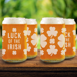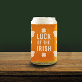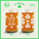 Enjoy your favorite beverage in this uniquely designed 16 ounce, LUCKY SHAMROCK beer can glass! St. Patrick's Day is the perfect occasion to break out this engraved Luck of the Irish glass. Our shamrock beer glass is fully wrapped in the design, so LUCK will always be on your side!