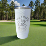 Whether you just carded a double or drained a 40-footer for par (miracles happen), this tumbler gets you. The Double Bogey?? Today I identify as a scratch golfer. Gimme a par! logo is laser-engraved for a permanent laugh, even when your scorecard isn’t.