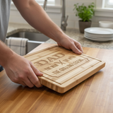 Men are kings of their domains, masters of their grills, and we wouldn't have it any other way! Perfect for women who are queens of the kitchen too! These personalized bbq carving boards are the ideal gift for anyone who loves to cook! They are perfect for use both in the kitchen and outside on the patio. Each etched serving board has a juice groove that's ideal for cutting raw meats or serving up the best burgers in town! Made from sustainable bamboo, this eco-friendly board is a great choice for the environmentally conscious person. The durable bamboo construction looks great and is sturdy enough to last for years of regular use.