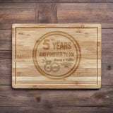 This beautiful wooden cutting board with juice groove is the perfect way to commemorate your special day. The circular design features a laser-engraved number of years married, reminding you of how much you have been together and how much more you have to look forward to. The natural grain adds a rustic touch and the smooth finish makes it a pleasure to use in the kitchen. It also makes a stylish charcuterie board, perfect for social gatherings. Made from sustainable bamboo, this eco-friendly board is a great choice for the environmentally conscious person. Whether you're preparing a romantic dinner for two or simply enjoying a glass of wine, this personalized etched cutting board is a beautiful reminder of your lasting love!